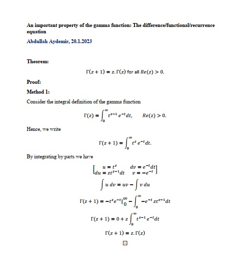 An important property of the gamma function: The difference, functional or recurrence equation